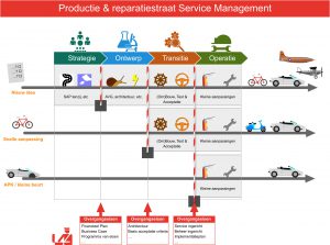 Niet door een complex en uitgebreid document uit te werken, maar juist door het eenvoudig te houden. Voor een klant heb ik deze metafoor van een productiestraat gebruiken, zodat medewerkers begrepen dat niet elke ICT aanvraag complex hoeft te zijn. Net zoals een band van een auto anders is dan een vliegtuig te ontwerpen.